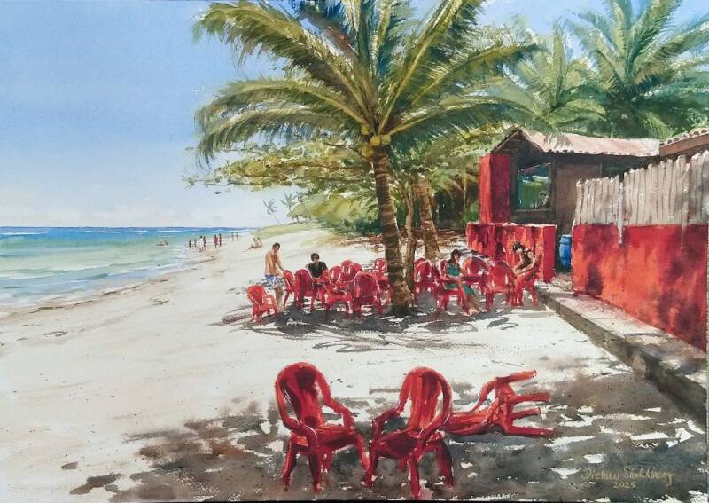 2025-111 Roter Strandkiosk (Brasilien), (35x50/50x70cm) 350 €