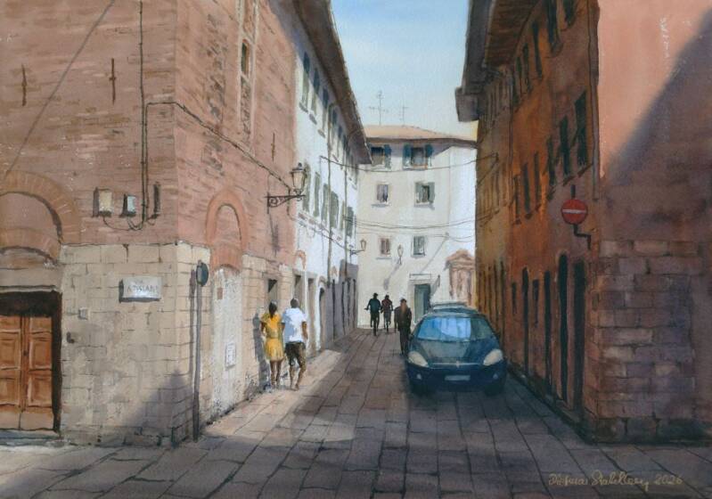 2026-010 Gasse in Prato (Toskana), (35x50/50x70cm) 350 €