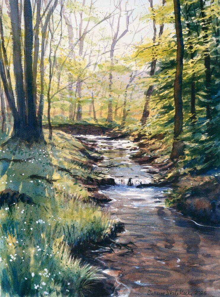 2026-016 Bach im Frühlingswald, (45x34/60x50cm) 330 €