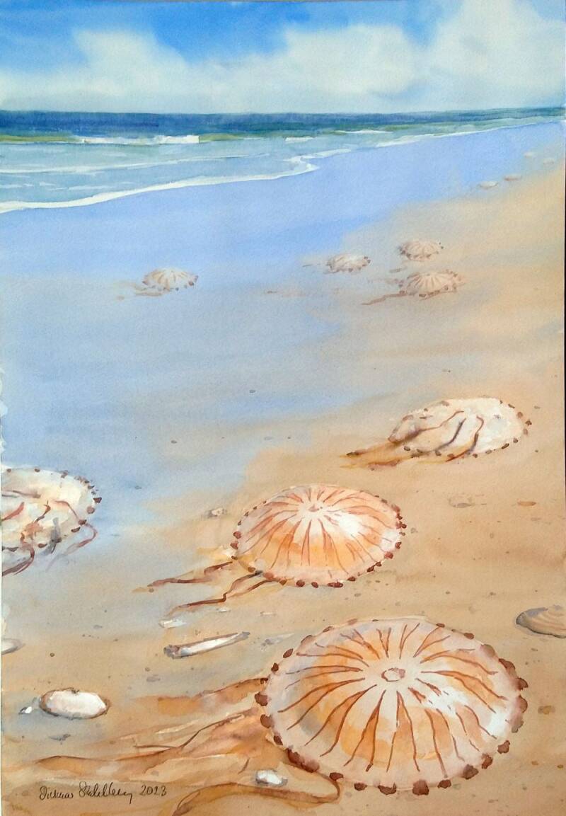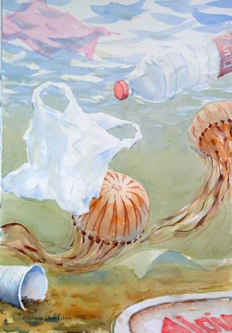 2023-823 Quallen und Müll, (49x34/70x50cm) 320 €
